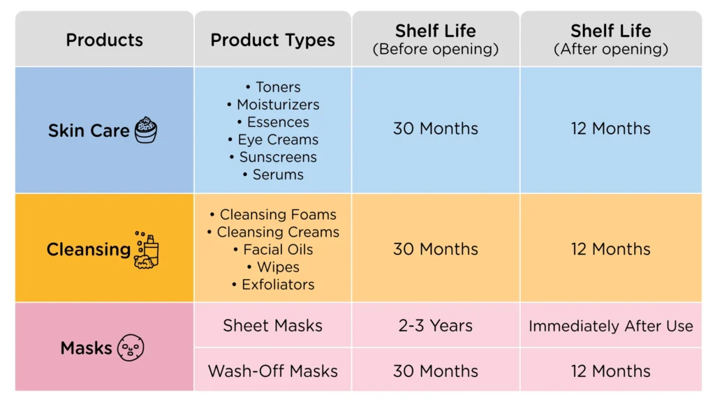 | محصولات مراقبت از پوست | کرمهای صورت و پوستسازها | ۶ تا ۲۴ ماه بسته به ترکیب | محصولات حاوی مواد شیمیایی ممکن است سریعتر خراب شوند. مواد طبیعی معمولا تاریخ انقضای کمتری دارند و باید در یخچال نگهداری شوند. |
